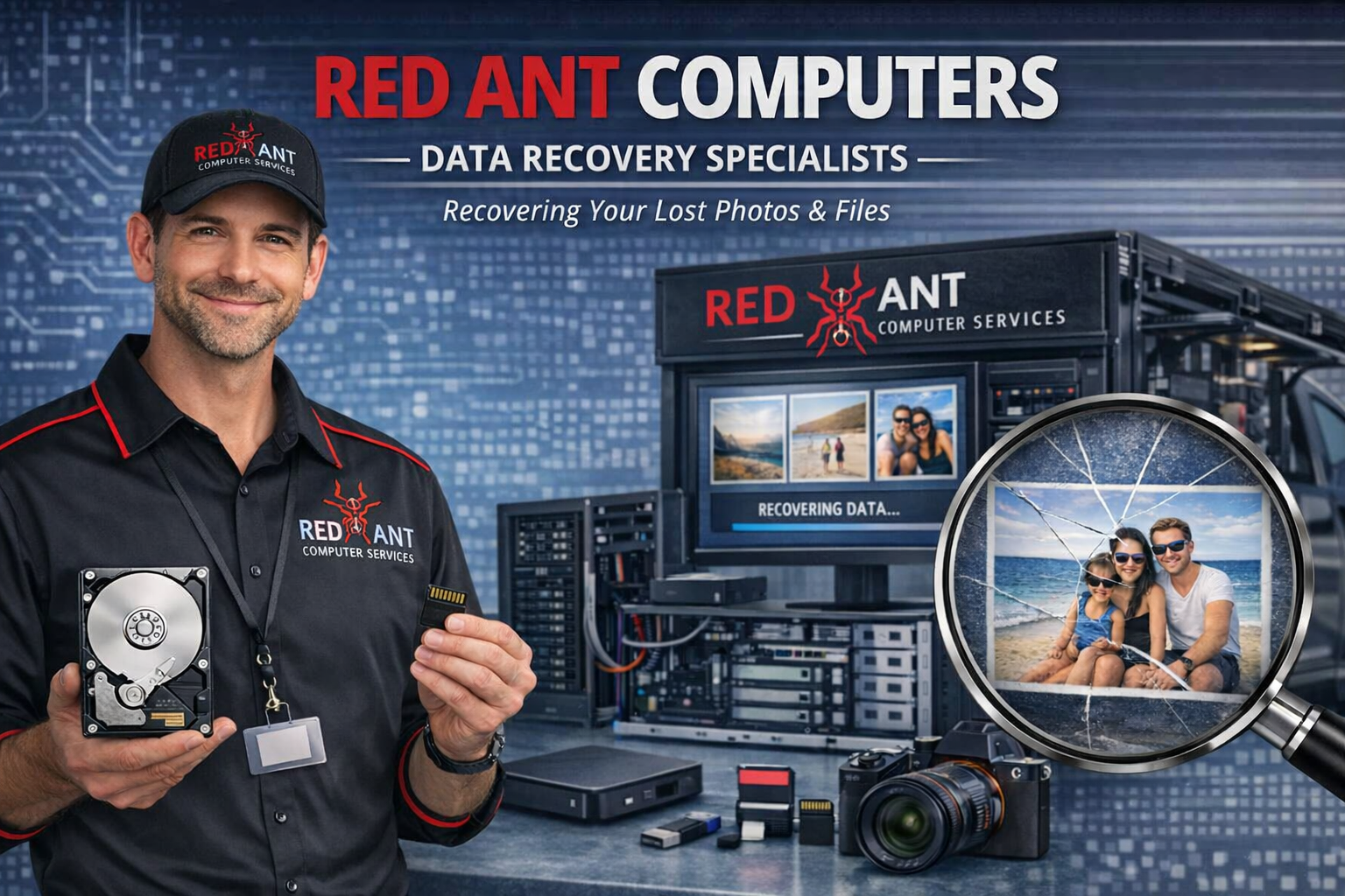 Red Ant Computers specialize in Data Recovery, and Back-Up management.